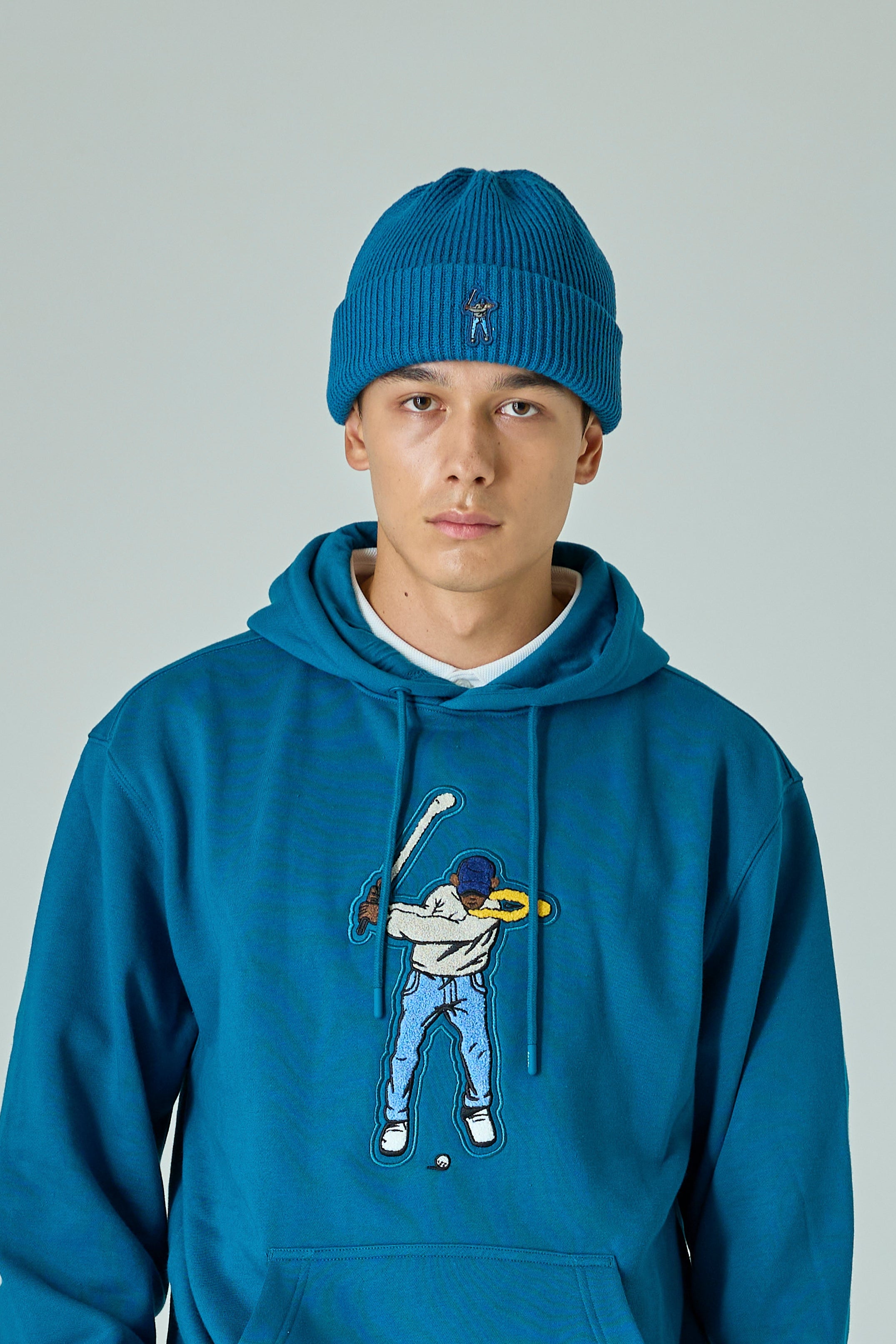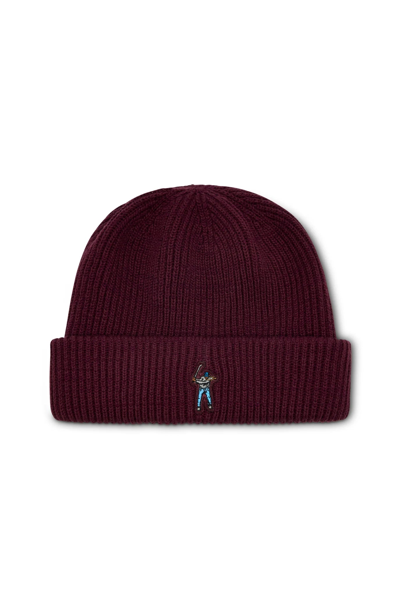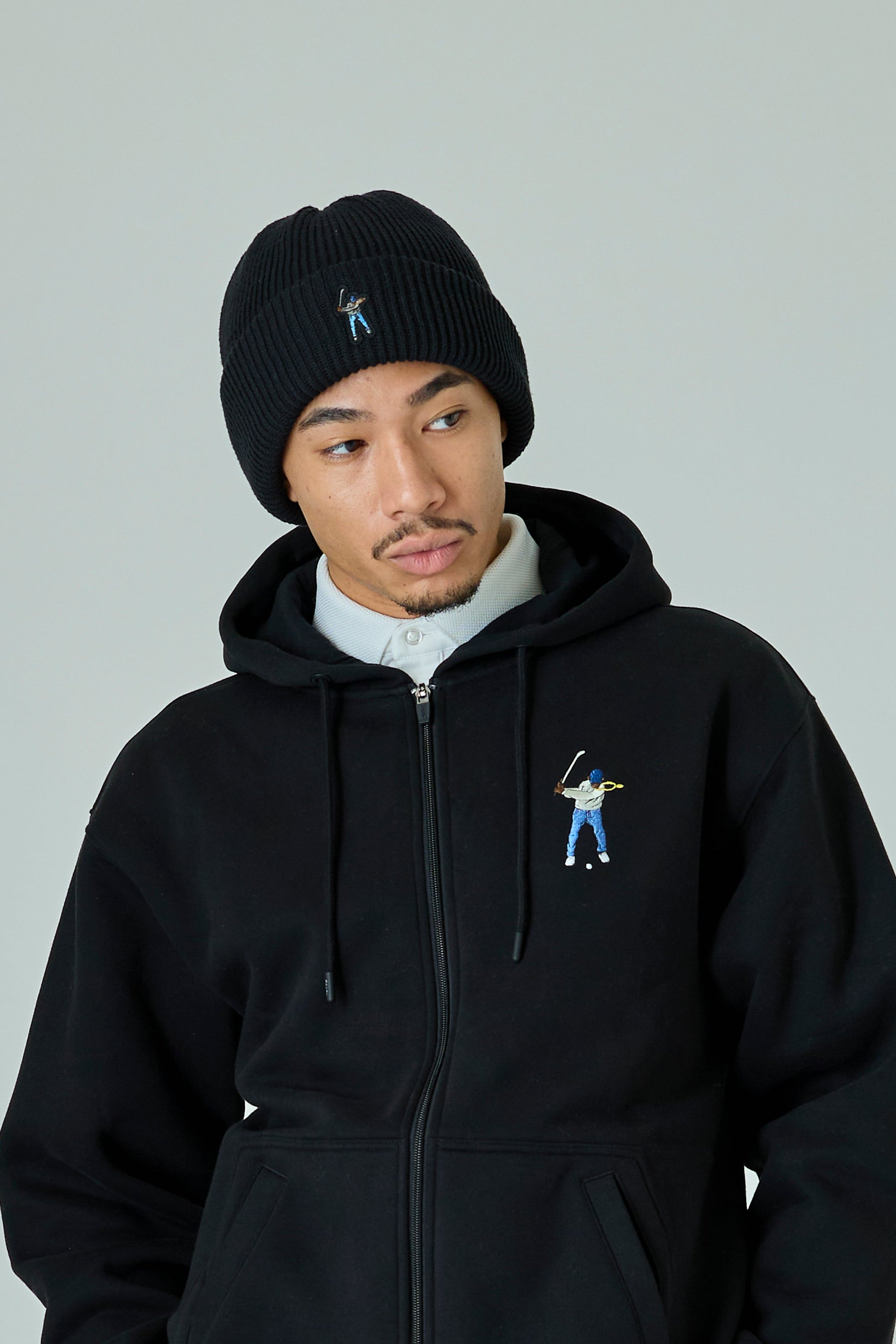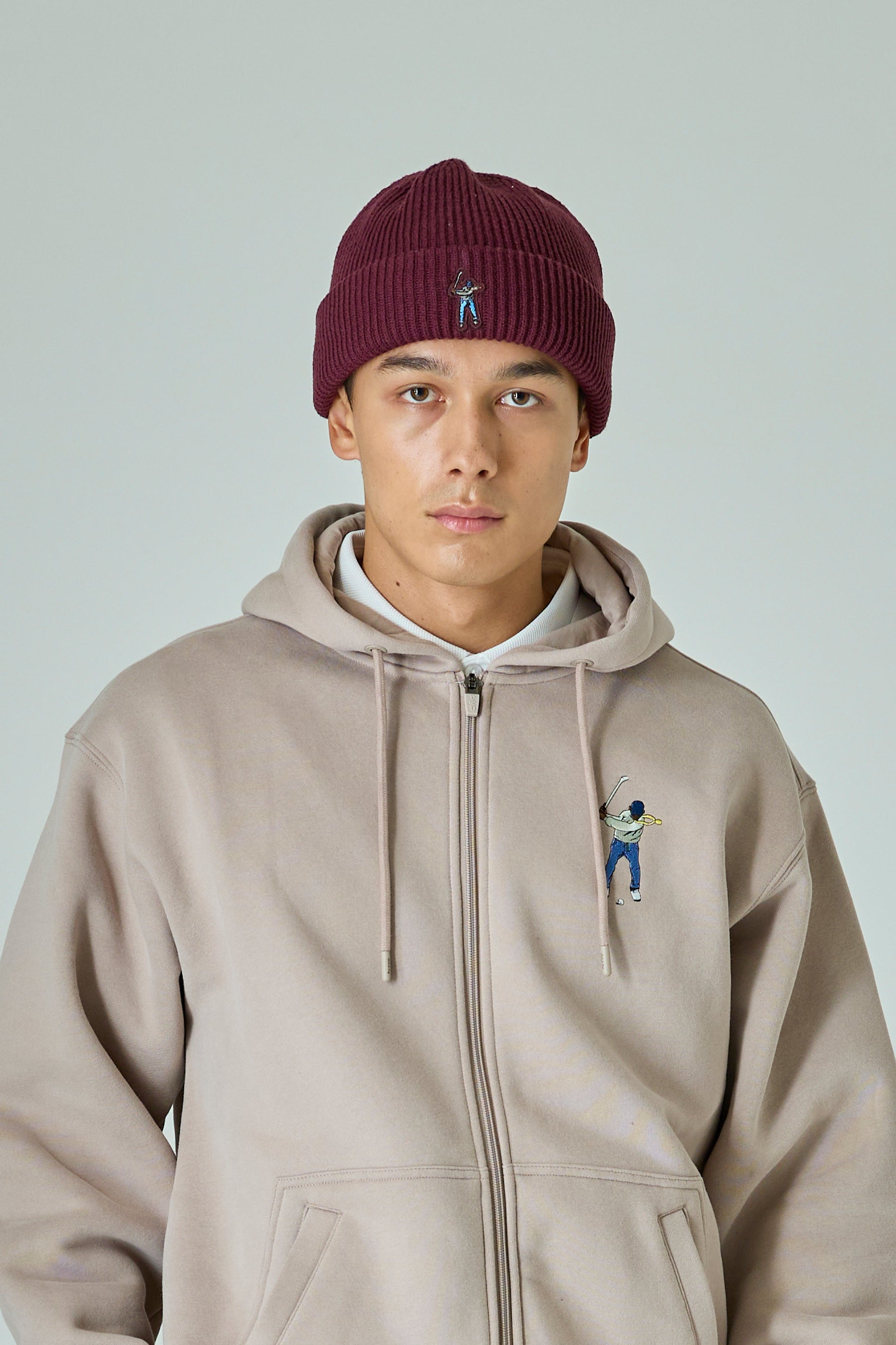 Eastside GolfのKnit Beanieは、冬のスタイリングをさりげなく引き締める定番アイテム。