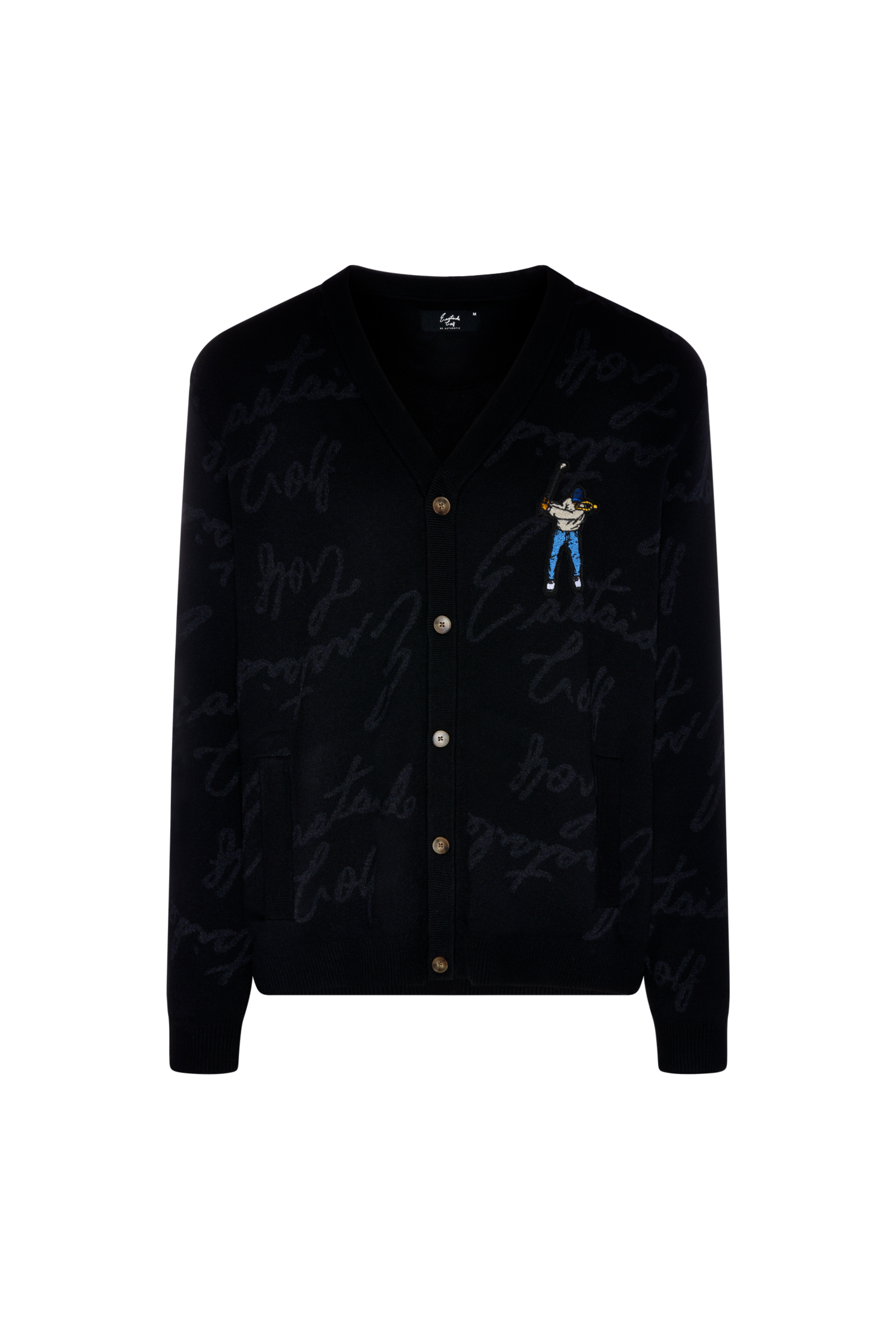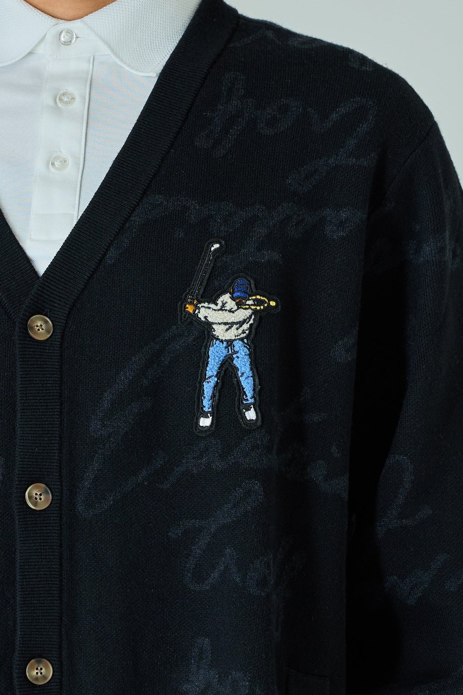 胸元の大きなスウィングマンが目を引き、全体にジャガード編みで表現された